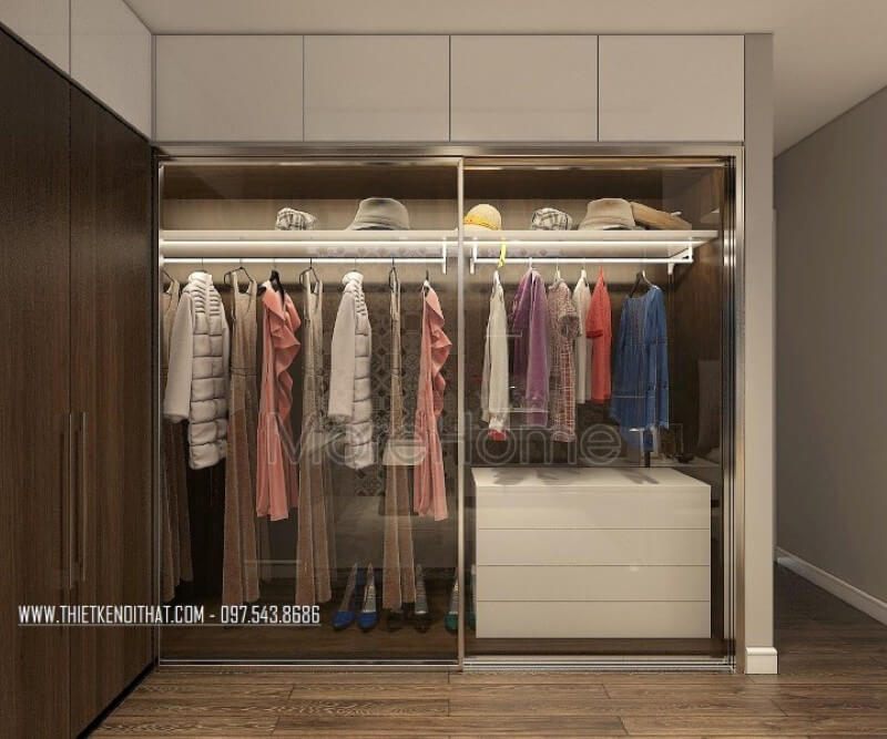 Tủ áo hiện đại được thiết kế theo dạng lùa tiện dụng, phù hợp với không gian phòng ngủ chung cư nhỏ