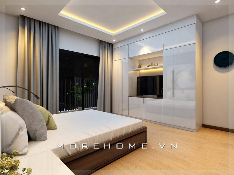 Tận dụng tối đa diện tích hạn chế của các góc phòng với mẫu thiết kế tủ quần áo thông minh đẹp màu trắng mang đến không gian phòng ngủ lí tưởng