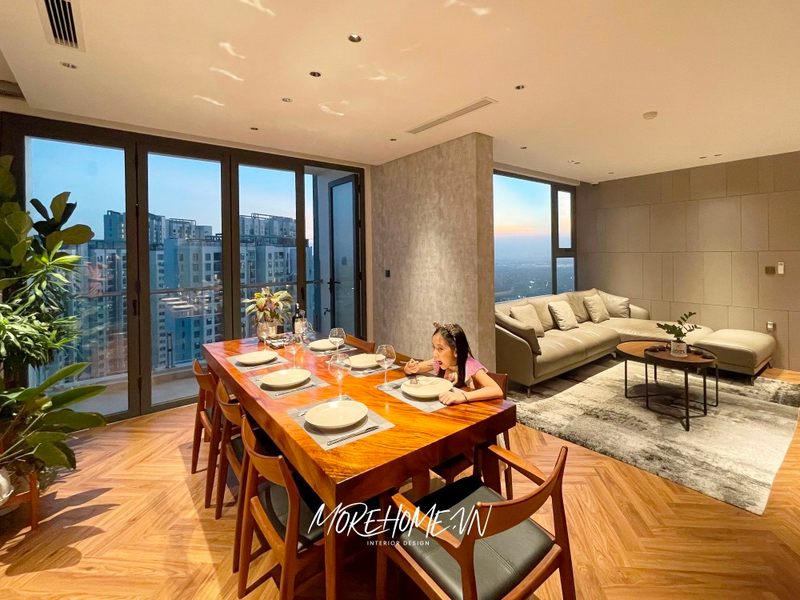 Thi công nội thất căn hộ với không gian mở rộng, thoải mái và tiện nghi, góp phần tạo nên sự sang trọng và đẳng cấp cho không gian sống.